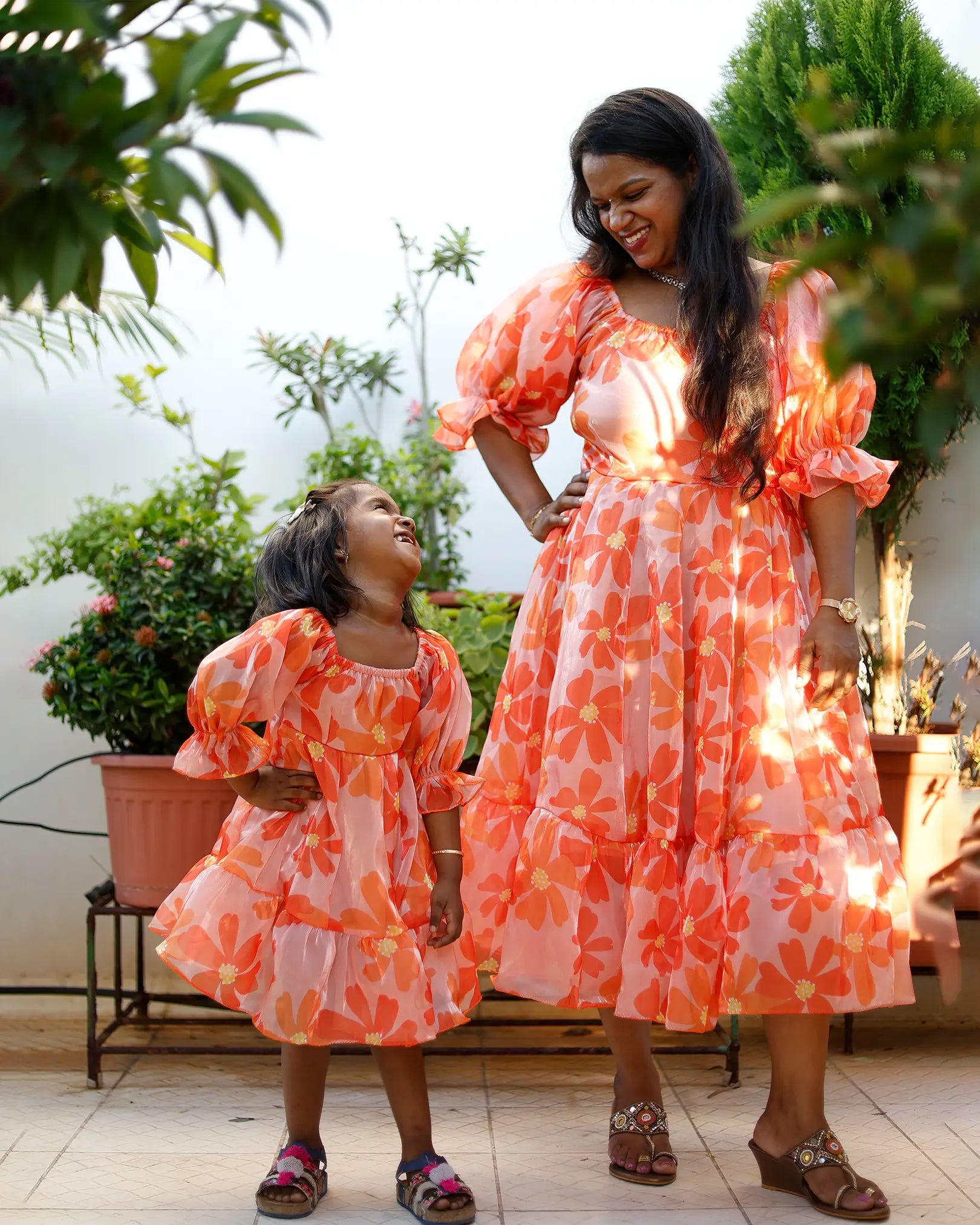 Bring vibrant energy to your wardrobe with the Orange Floral Midi Dress. Made from luxurious shimmers organza, this dress showcases a stunning orange floral pattern that embodies femininity and grace. The 12-inch balloon sleeves add a dramatic touch, creating a flattering, modern silhouette. Perfect for festive events, parties, or special occasions, this midi dress combines elegance and fun in one unforgettable look.