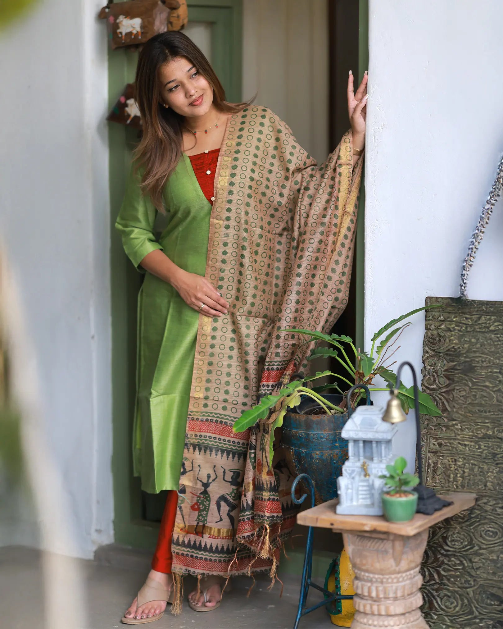 Matching cotton dupatta with ethnic prints
