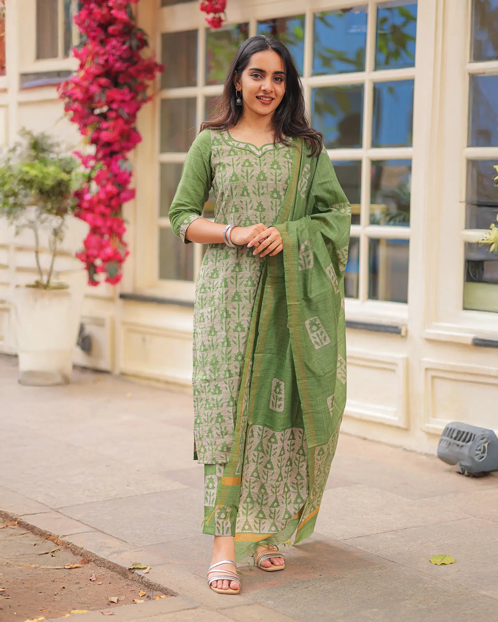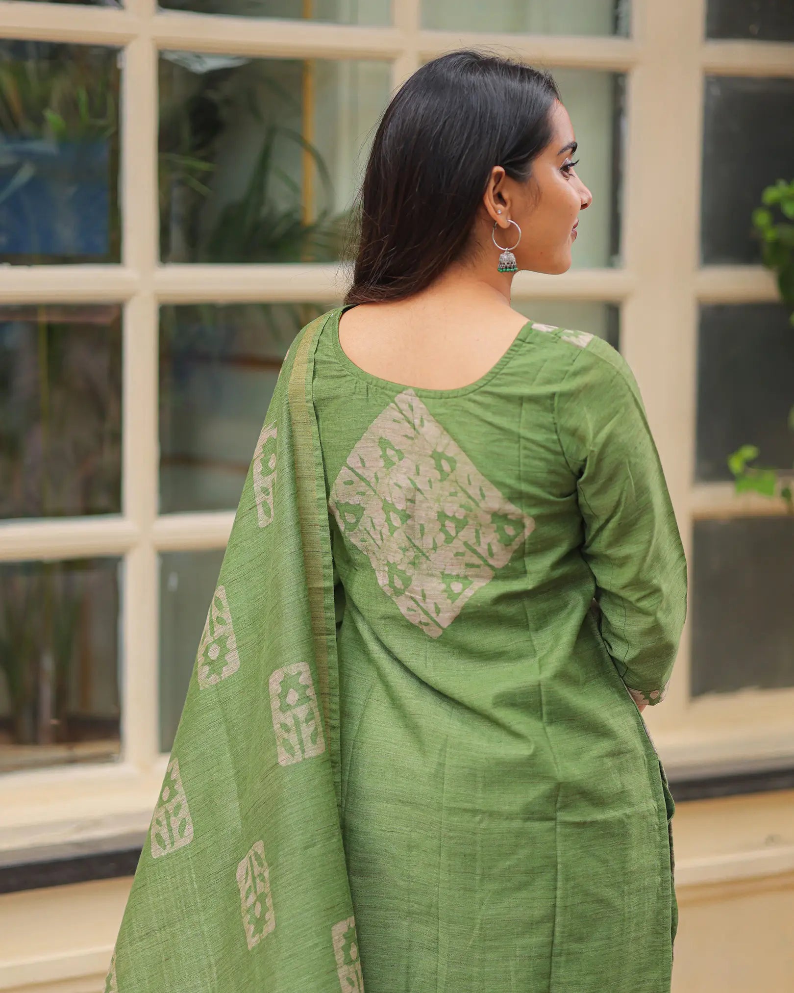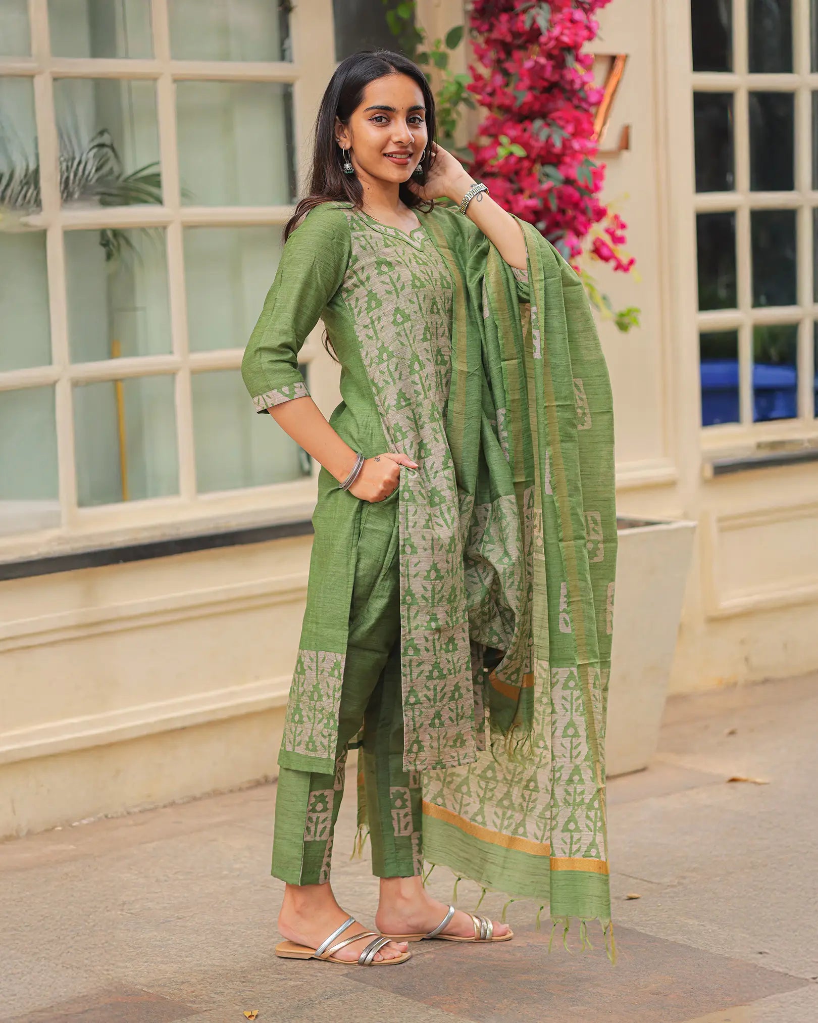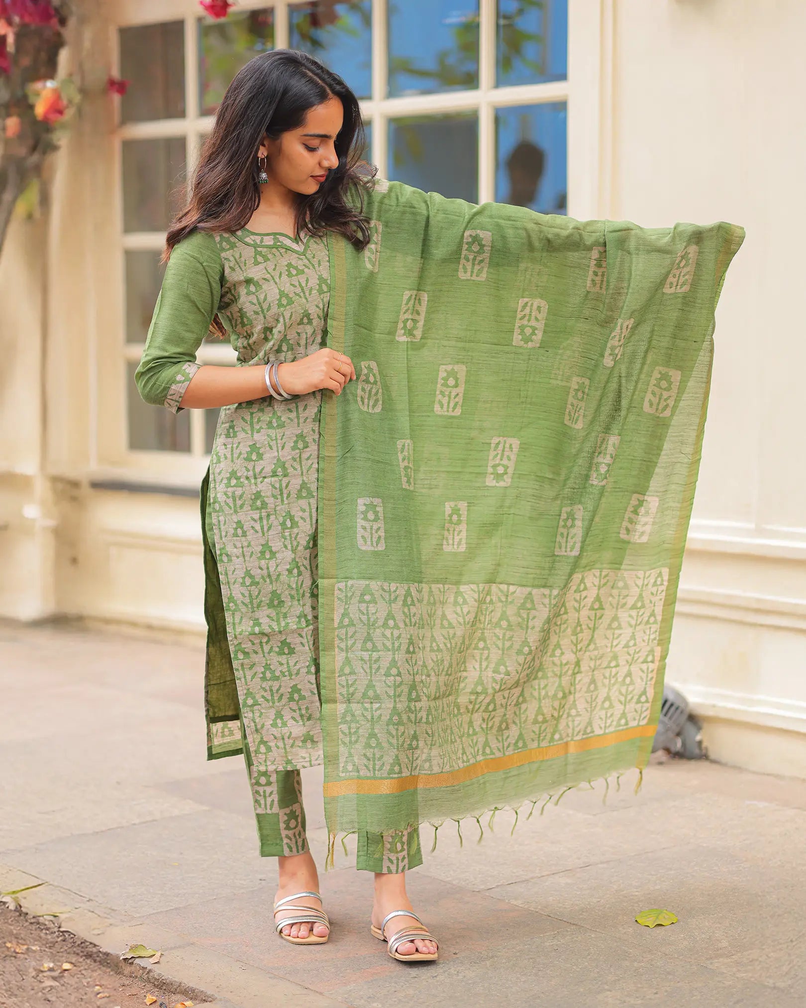 Elegant green tone with traditional block-inspired motifs